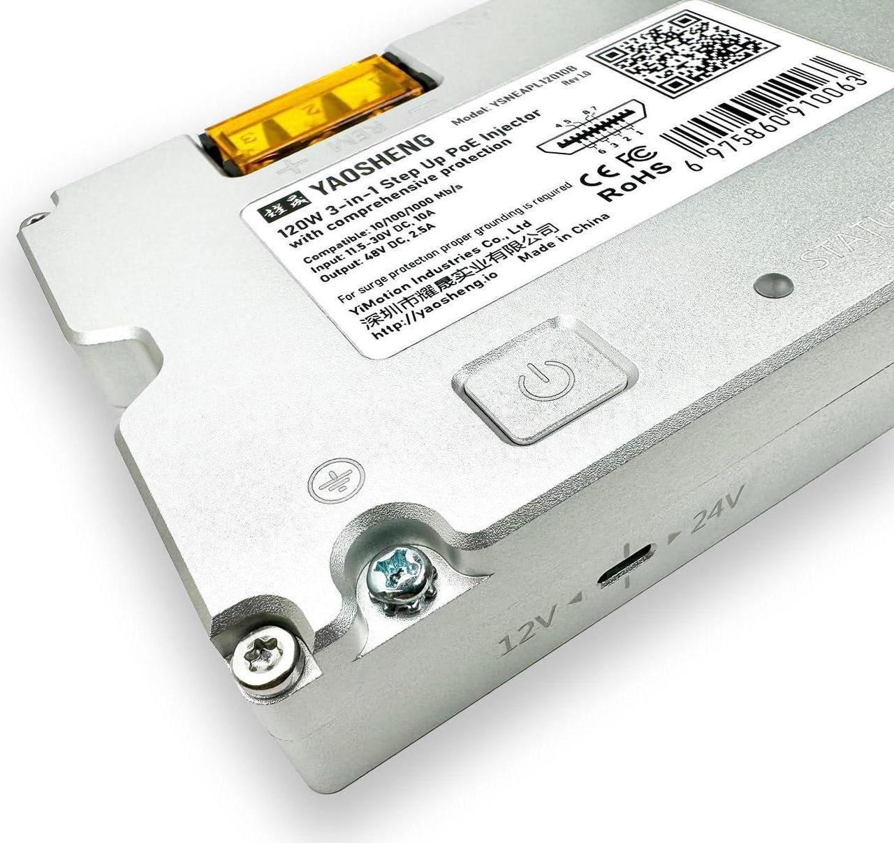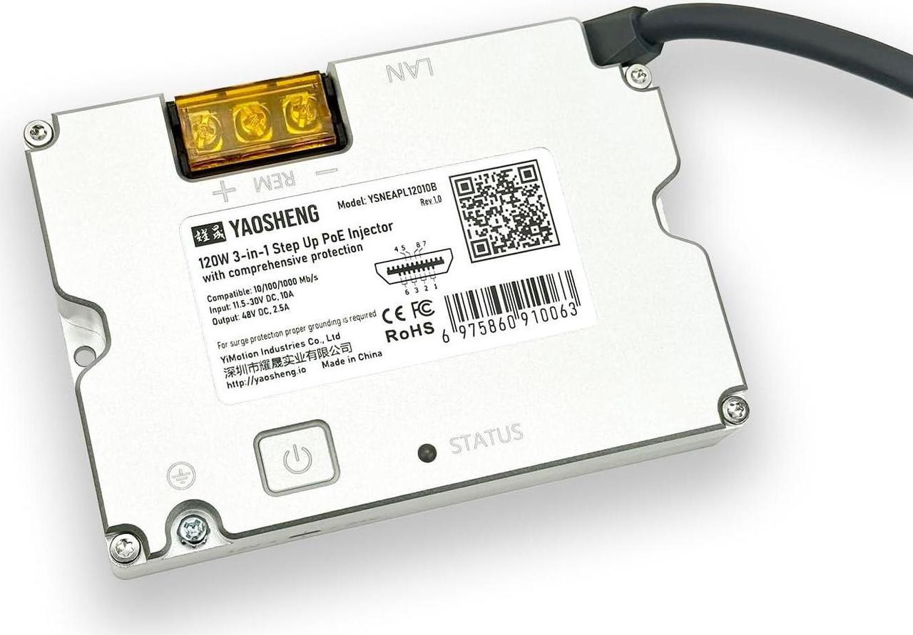 120W 3-in-1 Step Up PoE Injector with Comprehensive Protection for Standard Actuated Starlink