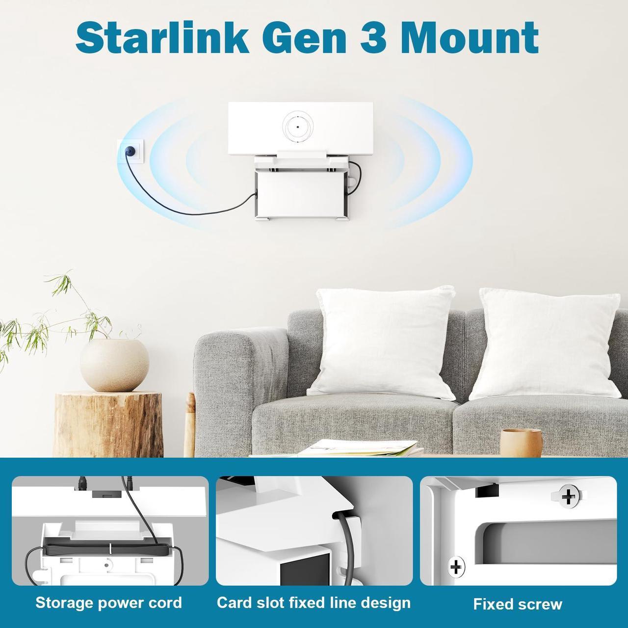 Locate your Starlink Gen 3 router for success! The Cverny bracket places the router at the best angle, enhances signal coverage and performance, and provides excellent Internet experience Product Name: starlink gen 3 mount Product weight: 300g (including cardboard box) Packaging size: 19.00 x 15.20 x 8.80CM Color: White Packing list: 3 screws, 3 rubber plugs