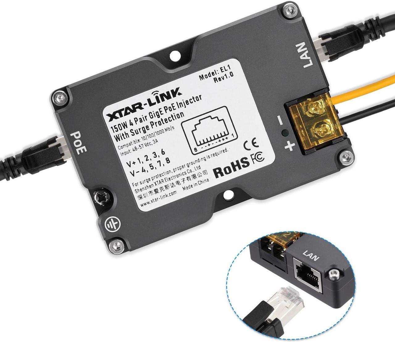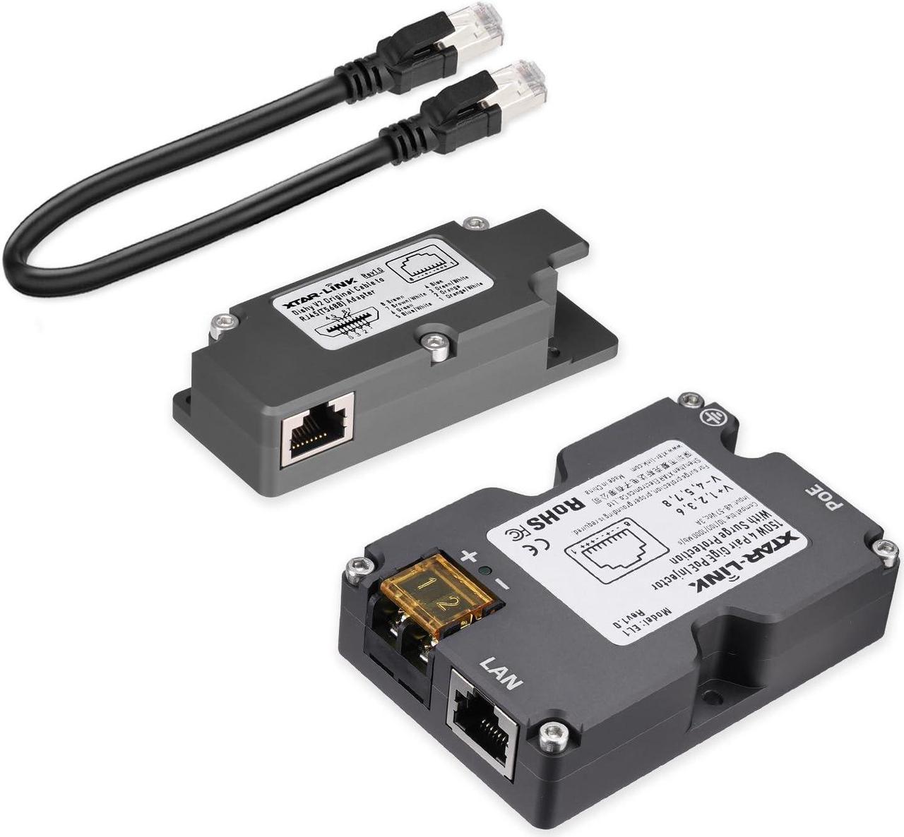 ELFCULB Starlink PoE Injector,150W GigE Passive PoE Injector with Starlink Dish V2 to RJ45 Adapter Suitable for Starlink Rectangular Satellite V2 Starlink Cable