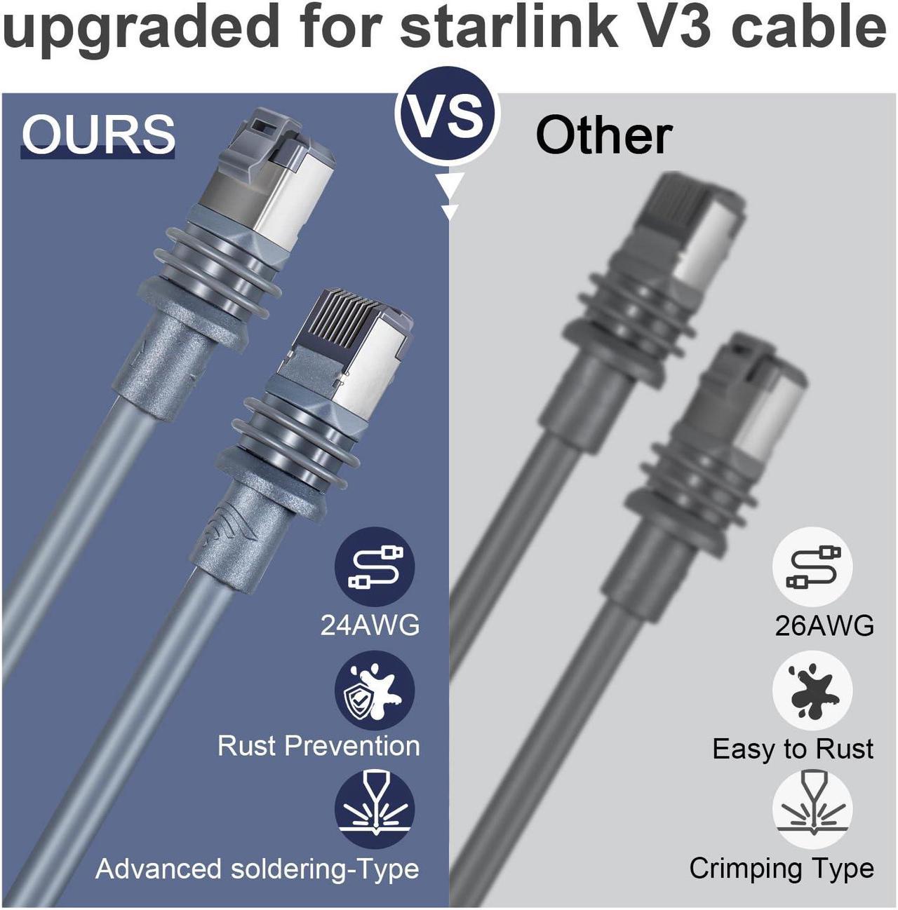 For Starlink gen 3 cable,Replacement Extension/ethernet Cable for Starlink Standard V3 and mini,Suitable for indoor and outdoor use Easy installation, Just plug in to use, easy to install, without any complicated setting up. If you have any questions, please contact us and we will reply within 24 hours! We have Reliable Connectivity & High Speed Transmission,The replacement for starlink Gen 3 cable with the With the latest RJ45 connectors, made of high-quality 26AWG single-core copper, durable construction for stable network supply. The data transfer speeds of up to 2000Mbps, provides streaming without lag. In an era of high efficiency and sustainable development, Qiugralian came into being. As a company dedicated to providing high-quality accessory solutions, we not only focus on the utility and durability of our products, but also regard convenient service as our core values. This starlink gen 3 replacement cable is rainproof, waterproof, windproof and snowproof