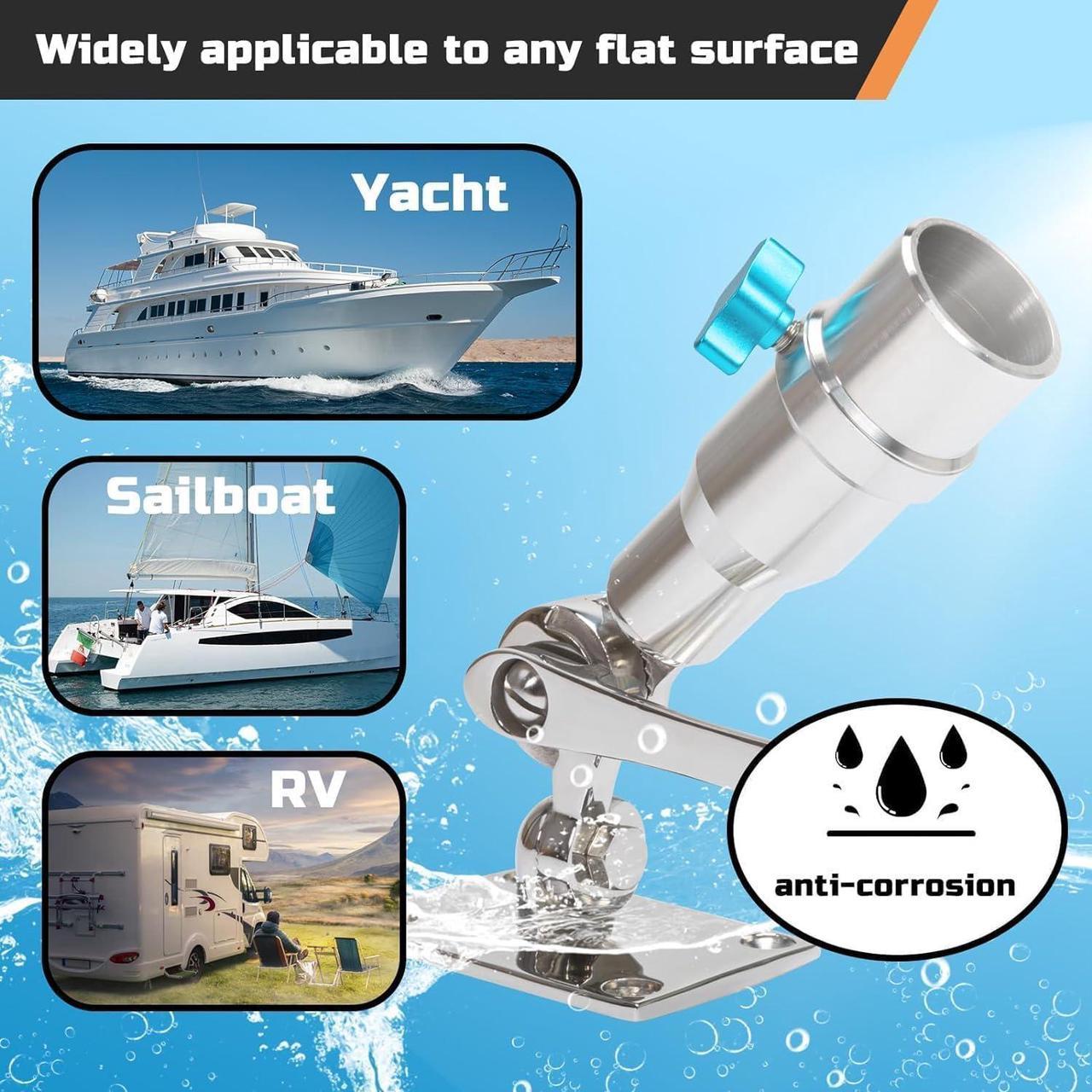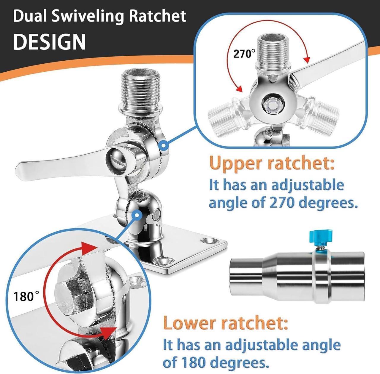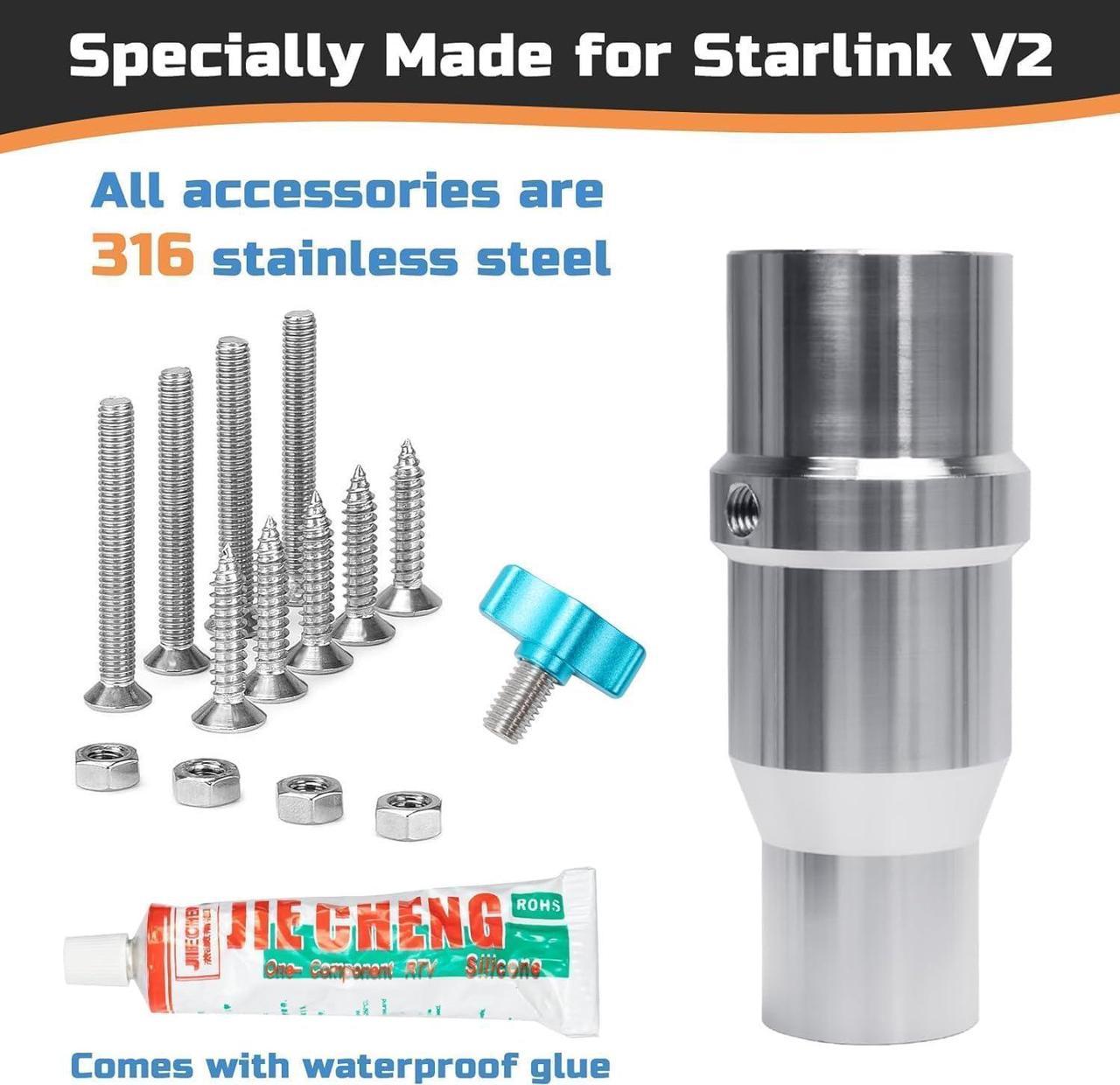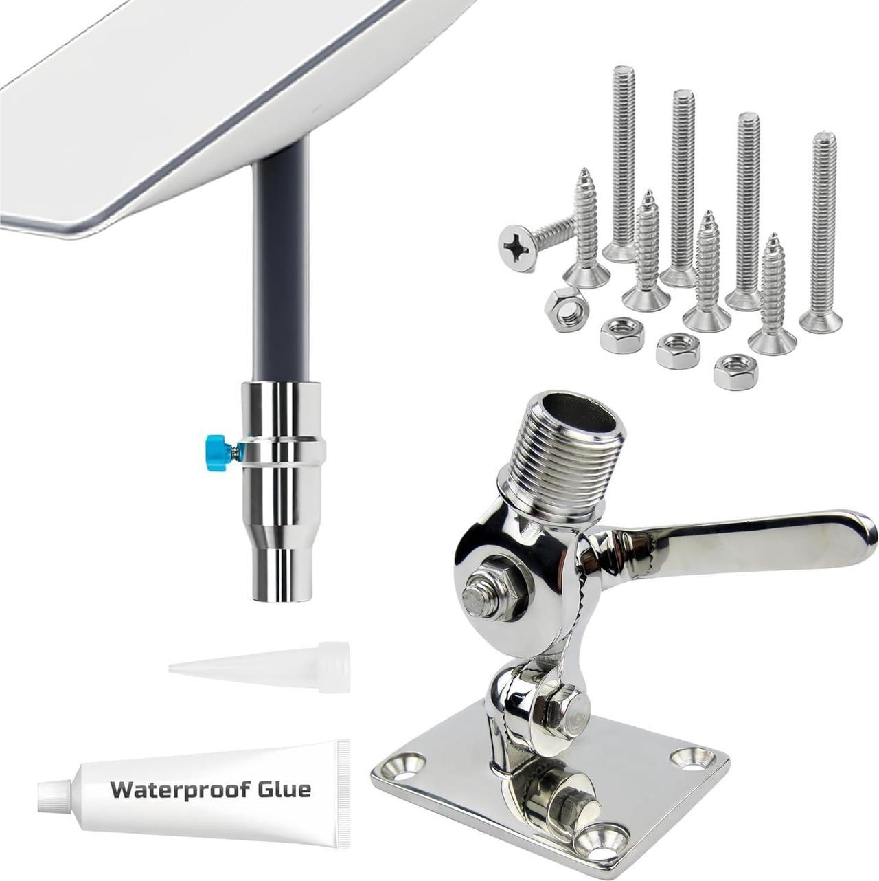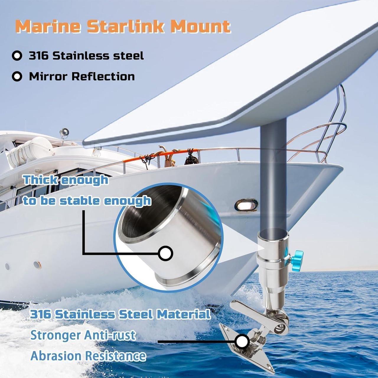 [(Material Details)] : starlink mounting kit Marine grade 316 stainless steel, rust-proof, Excellent seawater corrosion-resistant and durable. Highly polished to a beautiful mirror-like finish, There are two kinds of screw fittings for your choice, one is the bolt, the other is the screw (All accessories are made of 316 stainless steel) [(Adjustable)] : Top of the adapter is machined to fit the Starlink antenna post, Adjustable stainless dual axis antenna mount. The upper ratchet has an adjustable angle of 270 degrees and the lower ratchet has an adjustable angle of 180 degrees. [(Strict Working Procedure)] : Every gap of the product is polished according to the standard, and professional quality inspection will check for you, Install your starlink internet kit satellite safely and stably, allowing you to enjoy marine wifi stably. [(Sturdy and Reliable)] : Marine starlink bracket is extremely sturdy in heavy winds, hold over 200lbs. ensuring it stays secure even in adverse weath