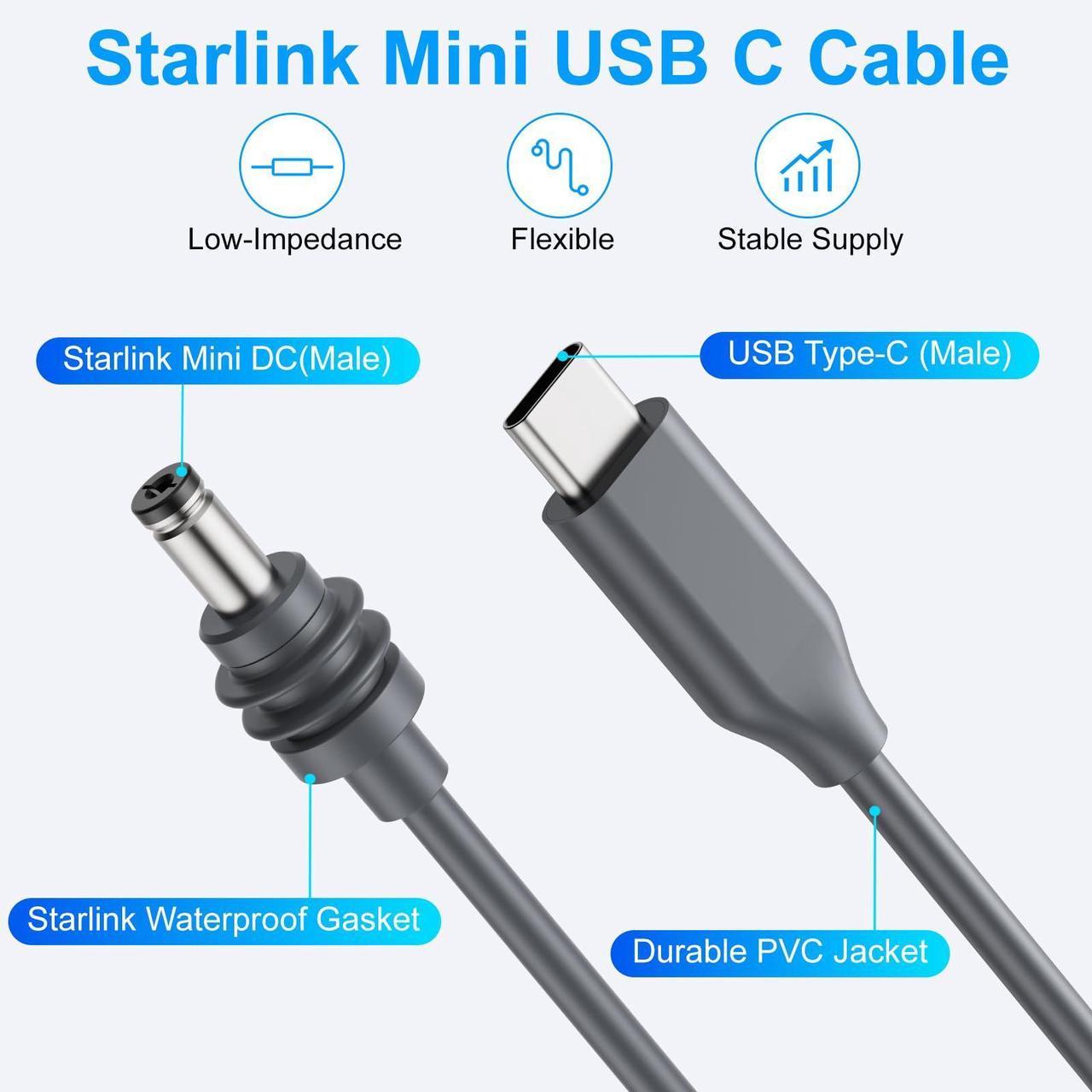Reliable Power Supply for Starlink Mini: The 10FT/3M Starlink Mini USB-C to DC power cable with PD Smart Receiver Chip ensures stable 20V output when connected to PD power sources. Compatible with 100W PD Power Banks: Works with PD-compatible power banks offering 20V 5A output for optimal performance of your Starlink Mini cable and accessories. Weatherproof and Durable: The Starlink Mini USB C cable features a waterproof gasket and high-quality PVC casing, ensuring reliable use in all weather. Easy Plug-and-Play Setup: Made with 18AWG wire for stable power transmission, this Starlink Mini power cable offers simple plug-and-play installation. Universal Compatibility: Designed for direct USB-C connection, this cable seamlessly integrates with your Starlink Mini and other USB-C devices, offering wide compatibility.