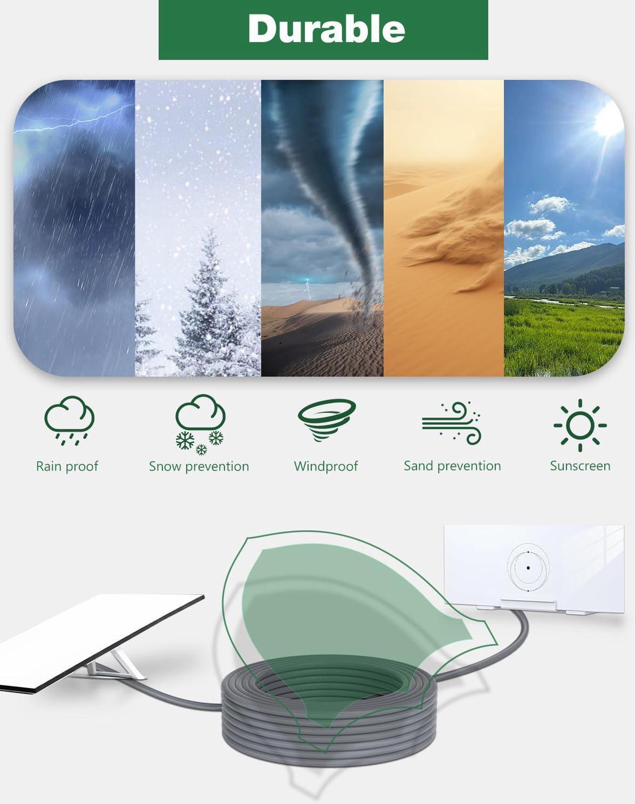 [(Starlink Cable Optimized for Starlink V3)] Starlink cable is designed specifically for Starlink Rectangular Satellite V3, this Gen 3 replacement cable has a perfectly compatible, super flexible length that can fit your needs whether you want to use it at home or outdoors need [(High Speed Transmission)] Starlink gen 3 cable adopts the latest RJ45 connector, which has enhanced conductivity, reduced resistance by 50%, and smooth data transmission. The 24AWG copper wire contains 8 copper wires for data transmission, which means your data transmission speed is up to 1200Mbps, ensuring seamless streaming [(Convenient and easy to use)] Both ends are equipped with protective covers, which can be removed with just one click and inserted according to the device card slot to use. No professional skills are required. The replacement process is simple and straightforward. Perfectly compatible with Starlink V3/Gen 3, ensuring the best connection [(High-Quality Material)] This Starlink G