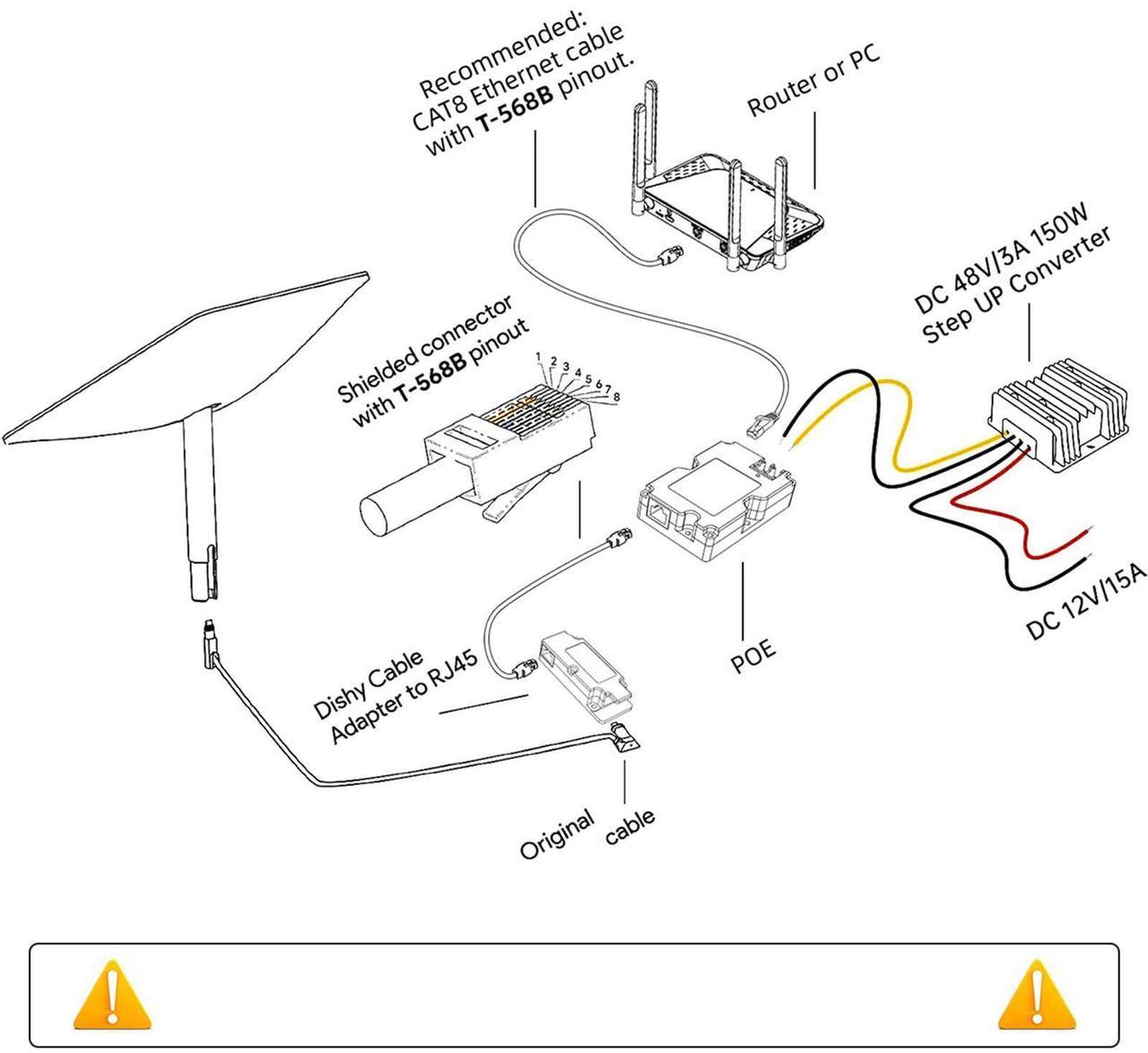 PoE Injector Kit for Starlink Dish V2 Internet Kit Satellite, Satellite Disk Cable Adapter to RJ45, DC Boost Converter 12V to 48V