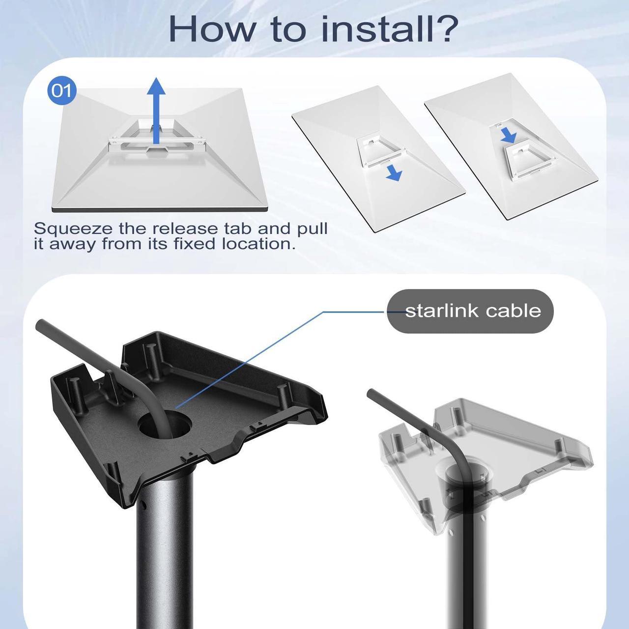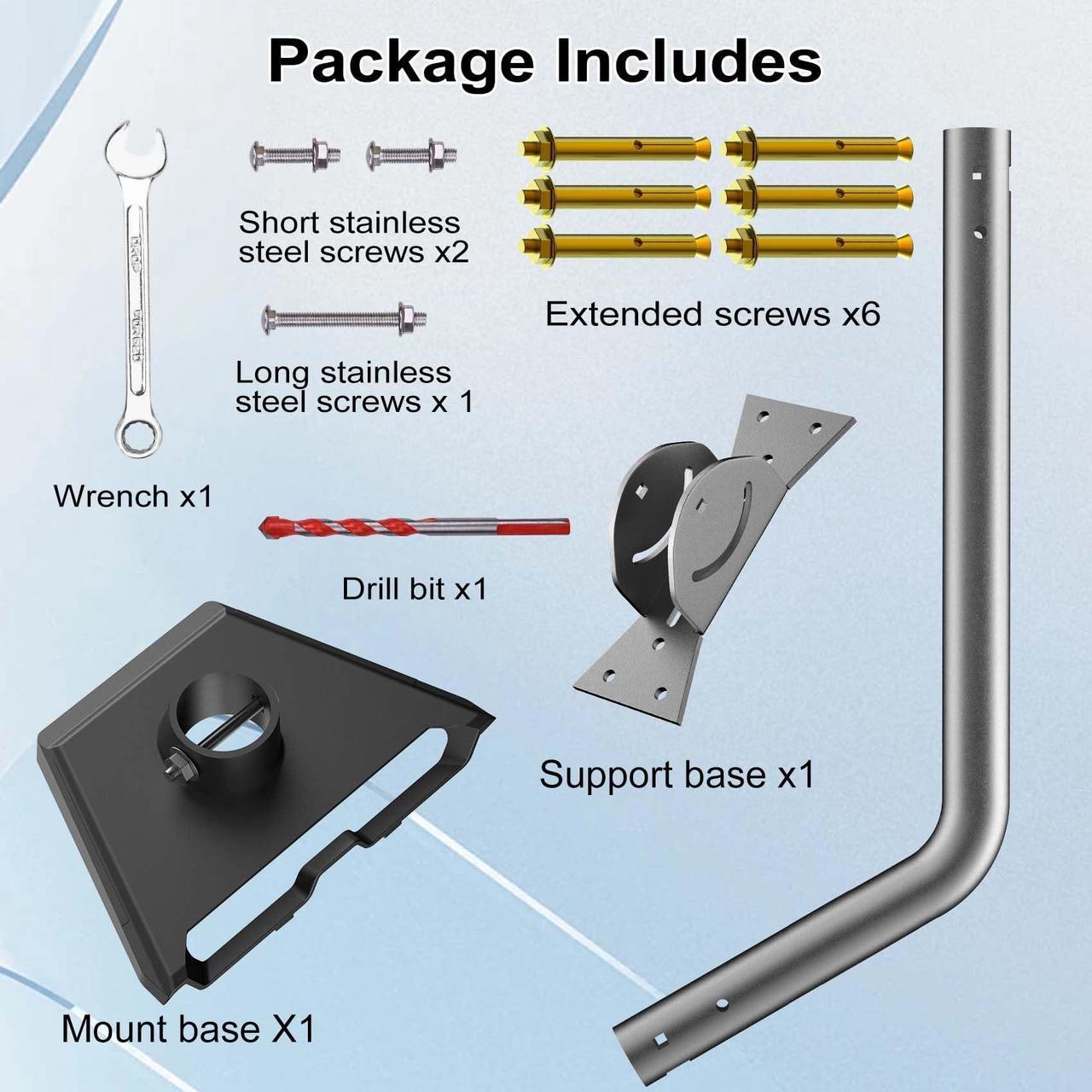 Most important: align the orientation before mounting on the wall, and adjust the base if the tilt angle is not right (refer to our third picture), Compatible with Starlink Standard Generation 3 Includes Starlink Gen 3 Pipe Adapter x1,extension screws x6, short stainless steel screws x2, long stainless steel screws x1, support steel tubes x1, support base x1, wrench x1, drill bit x1, instruction manual x1 Made of sturdy steel, rust-resistant painted surfaces, can hold up to 50kg/110LB Easy to install, you can watch the video and instructions for installation MOST IMPORTANT: Please calibrate the orientation and link the network before installation.