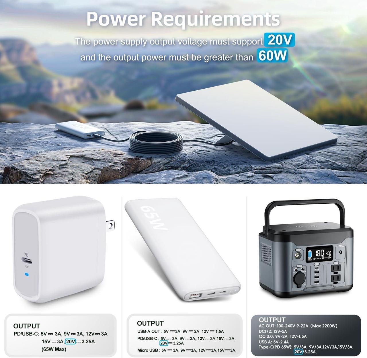 [(Specifically Designed for Starlink Mini)] This Starlink mini USB C power cable is designed to work seamlessly with the Starlink mini satellite internet system. The Starlink MINI type c to dc cord supports maximum 100w (20V 5A) power output, providing a reliable power source to your equipment. (Note:For the best performance and long-term reliability, you need to use a proper PD power Adapter or PD power source which support Min. 65W (20V 3.25A output, ensuring a 20V output on the DC barrel jack.) [(Versatile Compatibility)] Starlink mini type c to dc cable, its USB-C interface makes it compatible with a wide range of devices, allowing you to use it with various power adapters and chargers. Whether you need to connect to a power bank, wall charger, or other USB-C enabled devices, this cable offers versatility that meets your power needs. [(Versatile Compatibility)] Starlink mini type c to dc cable, its USB-C interface makes it compatible with a wide range of devices, allowing y