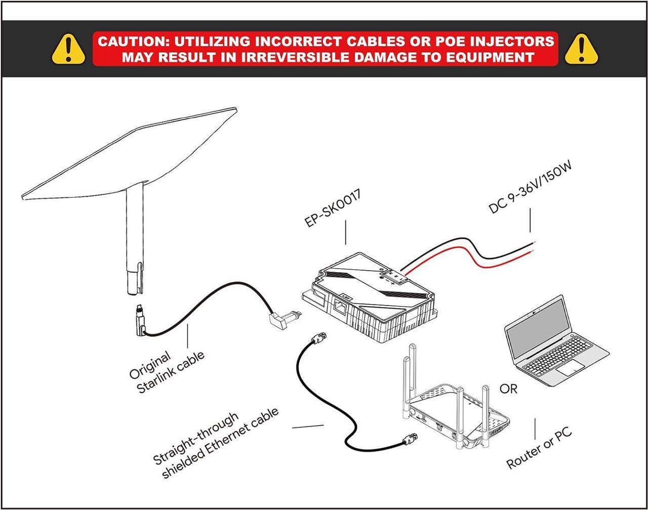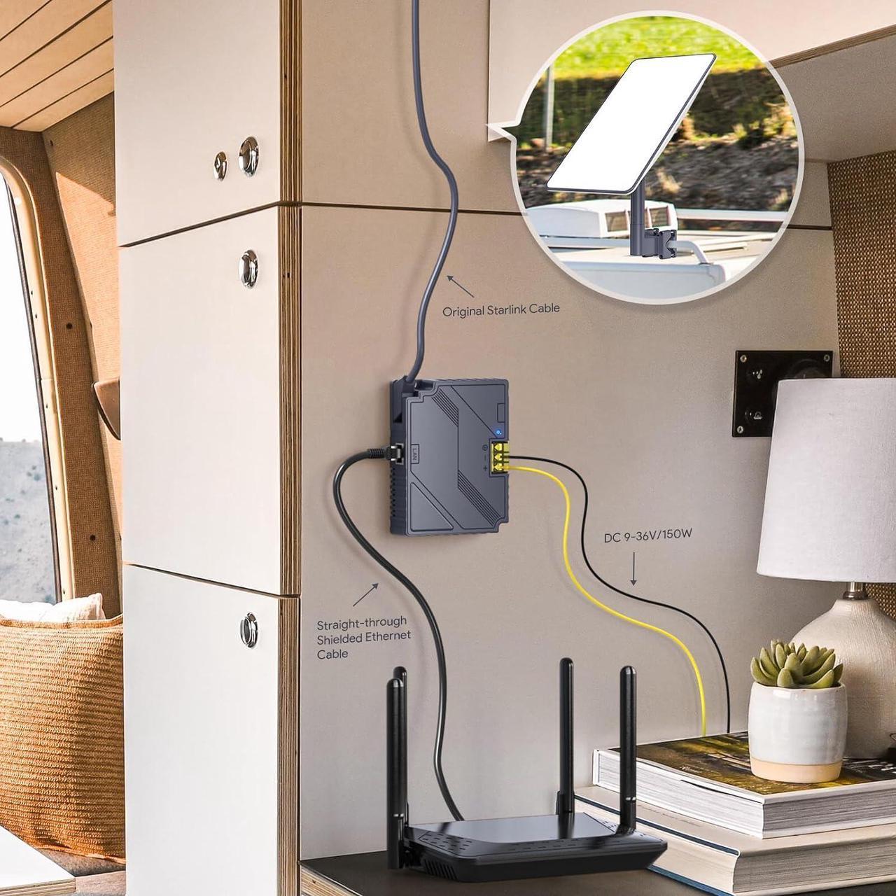 Starlink PoE Injector – 150W Gigabit PoE Injector Compatible with Starlink Standard Actuated Gen 2 Dish 3-in-1 12v Conversion Kit with SPX Cable Adapter and Converter DC 9-36V Input