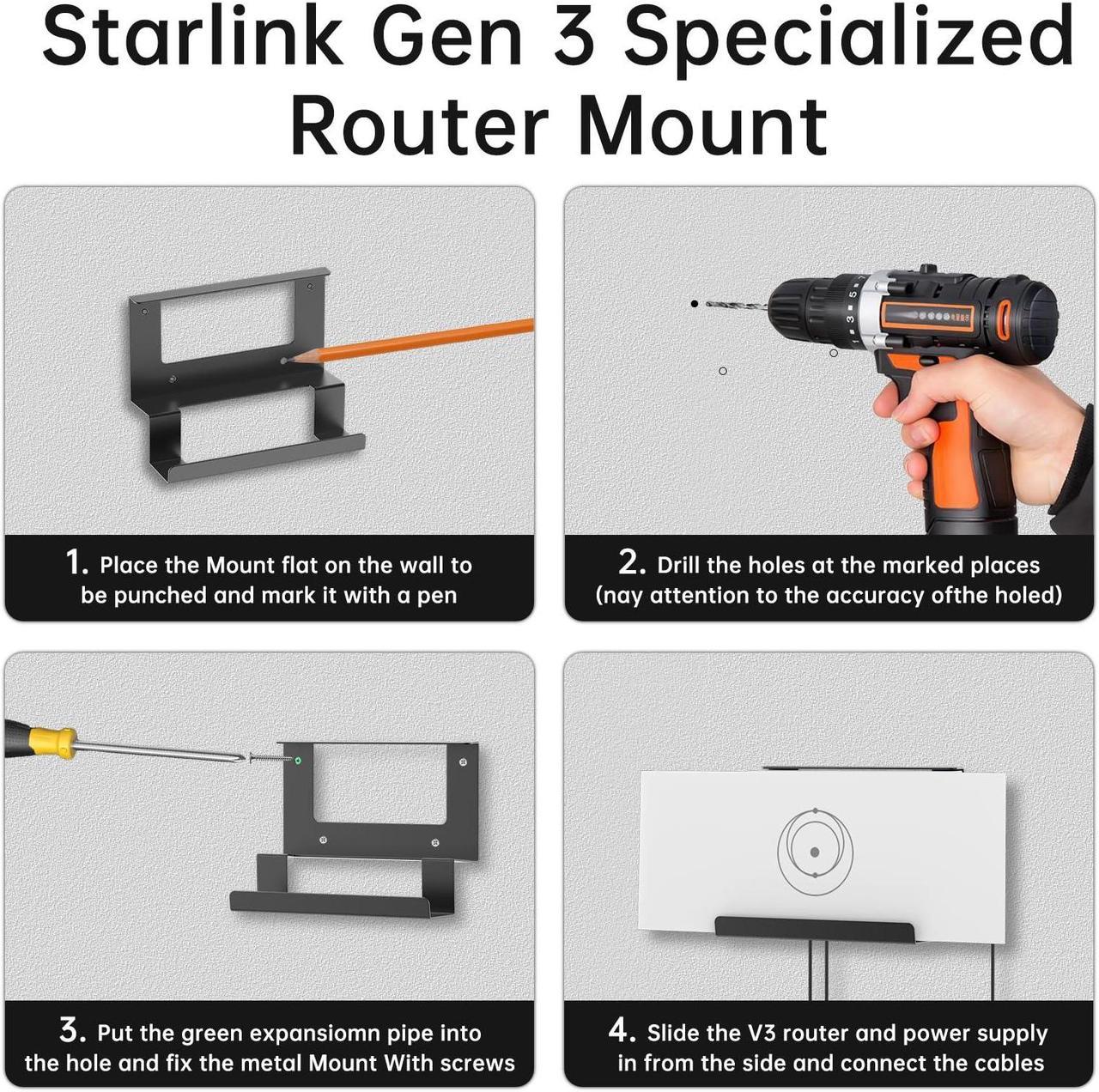 Tesha Starlink Gen 3 Router Wall Mount, Black Metal Rack with Installation Accessory for Gen3 Router & Power Supply, 2 in 1 Bracket for RV Boat, Office & Home Space Saving
