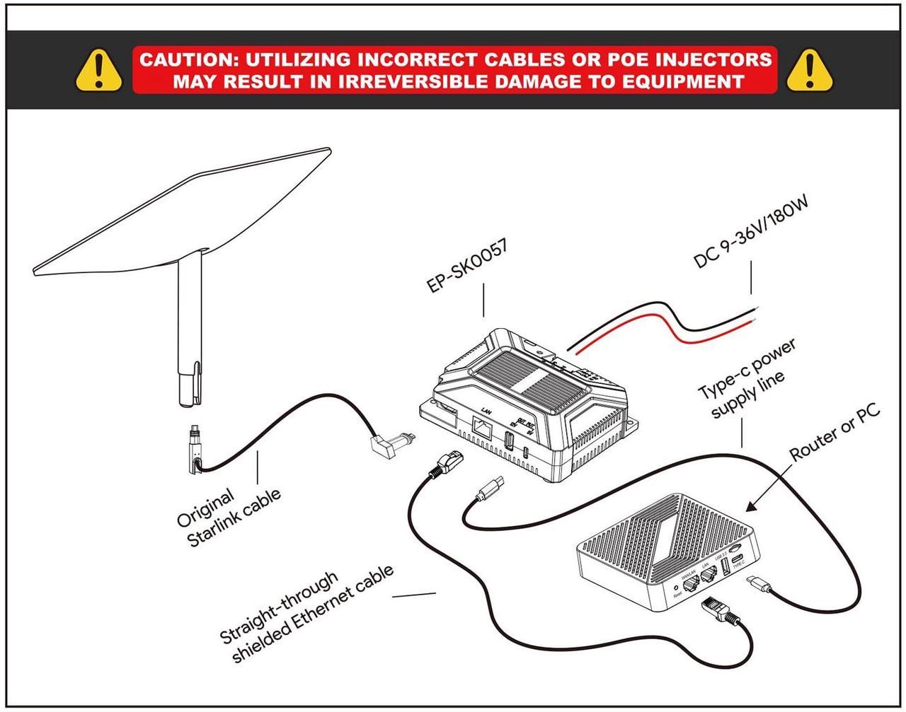 *High-Powered Performance: XLTTYWL 5 in 1 12V starlink gen 2 dc conversion kit efficiently delivers 180W power to reliably support Starlink V2 Internet Satellite Dish. *Robust Protection and Environmental Resilience: 180W Starlink 12V Poe Offers superior surge and ESD protection, operates seamlessly in temperatures from -20 to +55 degC, and maintains stability in humid conditions (10% – 90% non-condensing). Additionally, efficient storage capabilities ensure reliability and longevity. *Versatility in Device Connections: With a plug-and-play design and a single LAN output and USB-A(12V/3A)and Type-C(5V/3A) power outputs, 12v starlink conversion kit set offers flexibility in connecting your computer, router, and other devices. Enhances your starlink internet experience by allowing you to effortlessly integrate your entire network setup with Starlink internet kit satellite. *Convenient and Space-Saving: Easily mount the Starlink mini Cable mounting Caddy on the wall, RV,